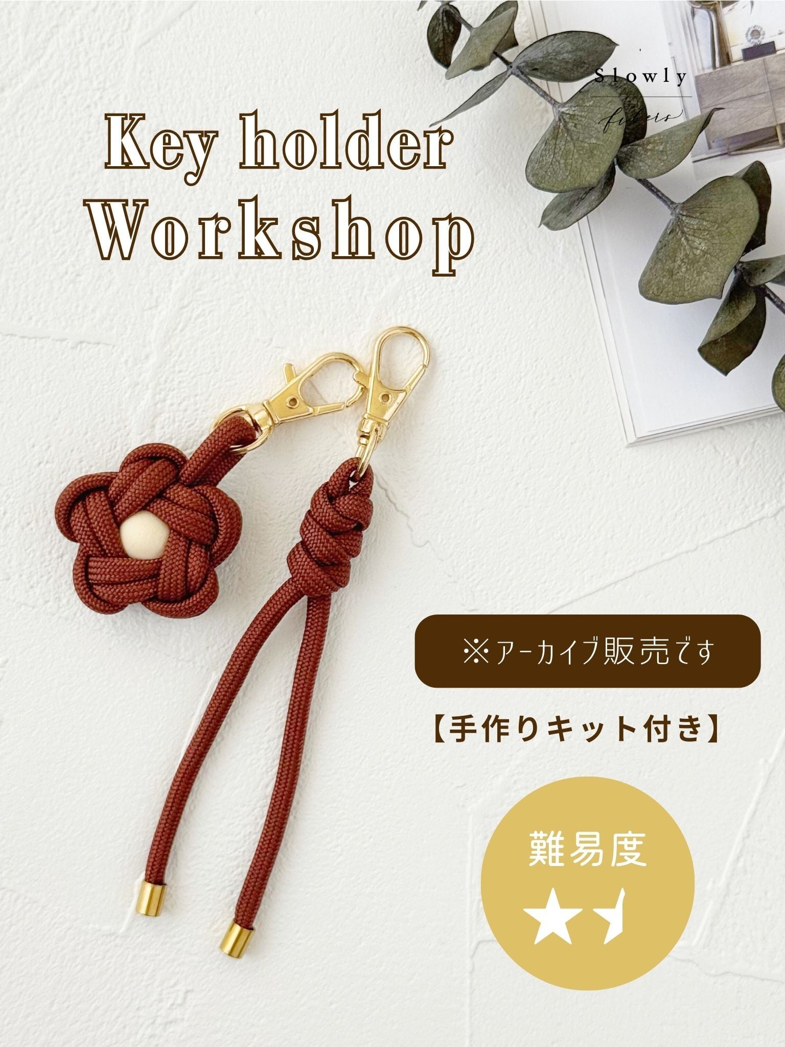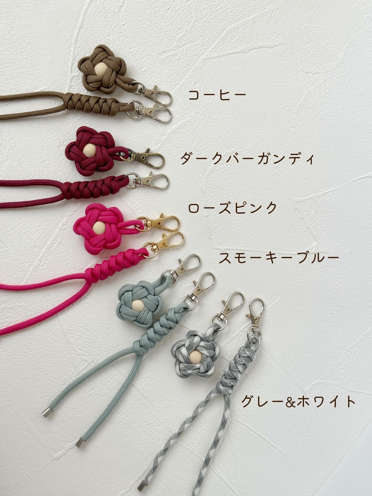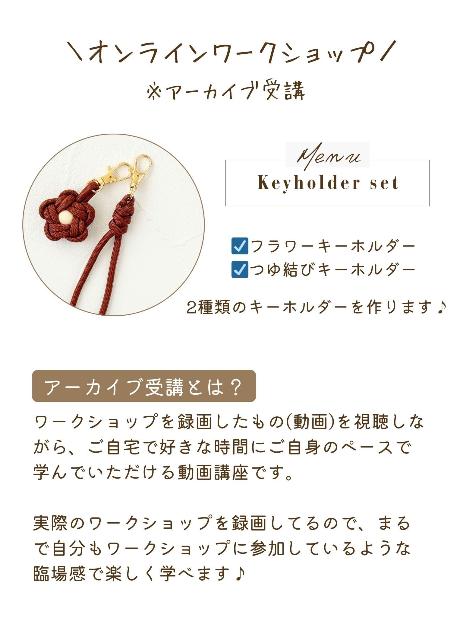 お花の形が可愛いキーホルダーとスタイリッシュなつゆ結びのキーホルダーの2種類が作れるワークショップです。