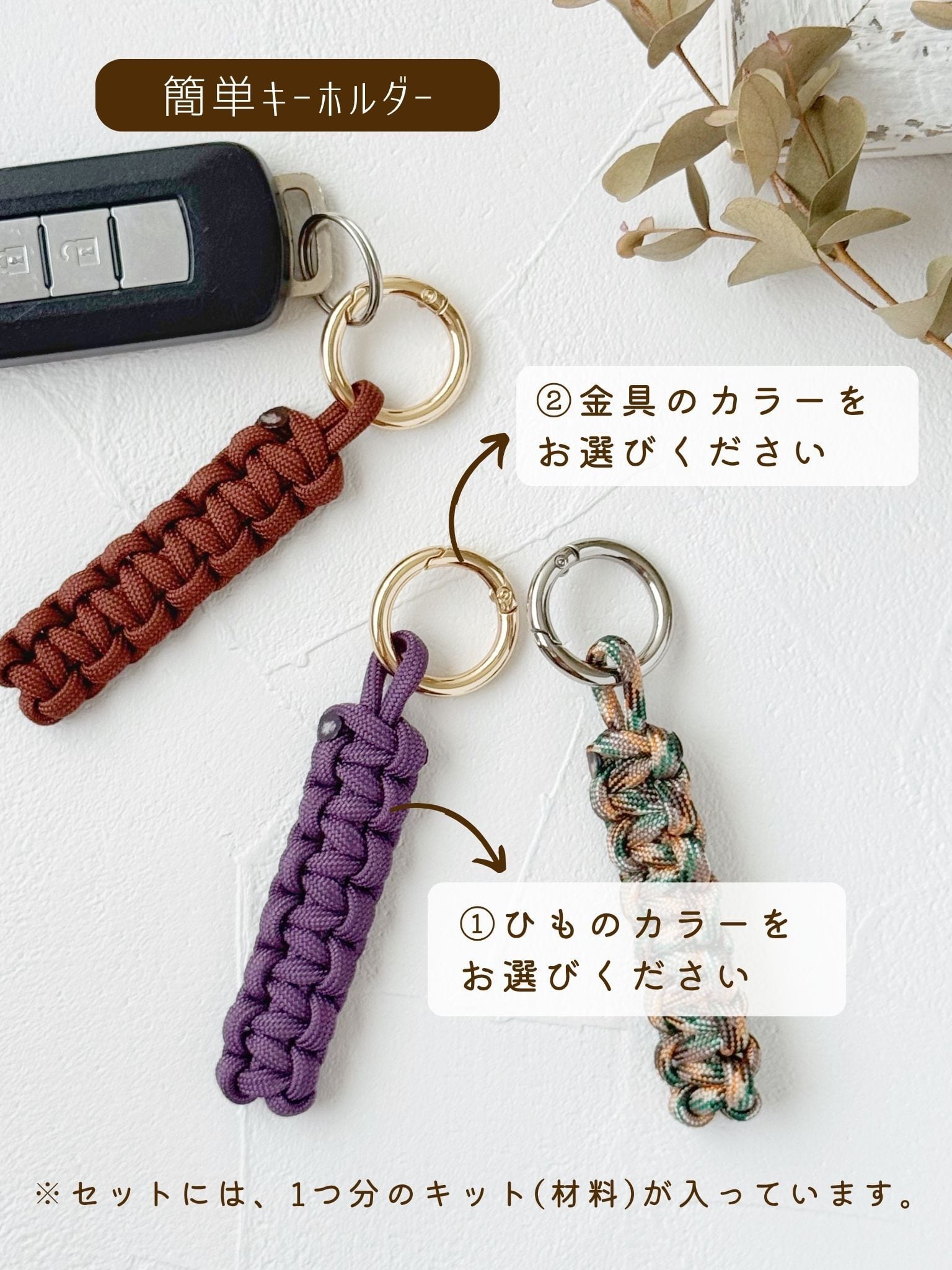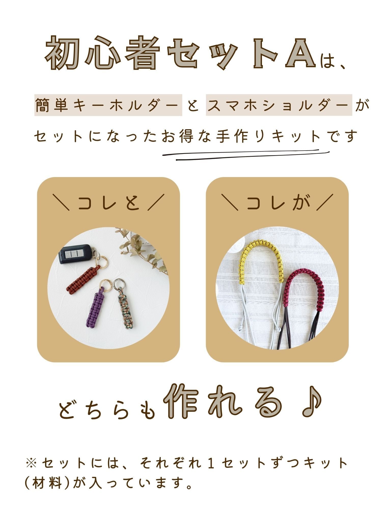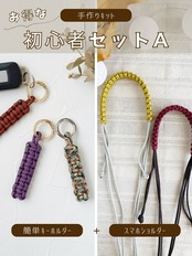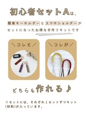 「マクラメはじめてさん」にもぴったりな、【簡単キーホルダー】と【スマホショルダー】の手作りキットのセット販売です♪
