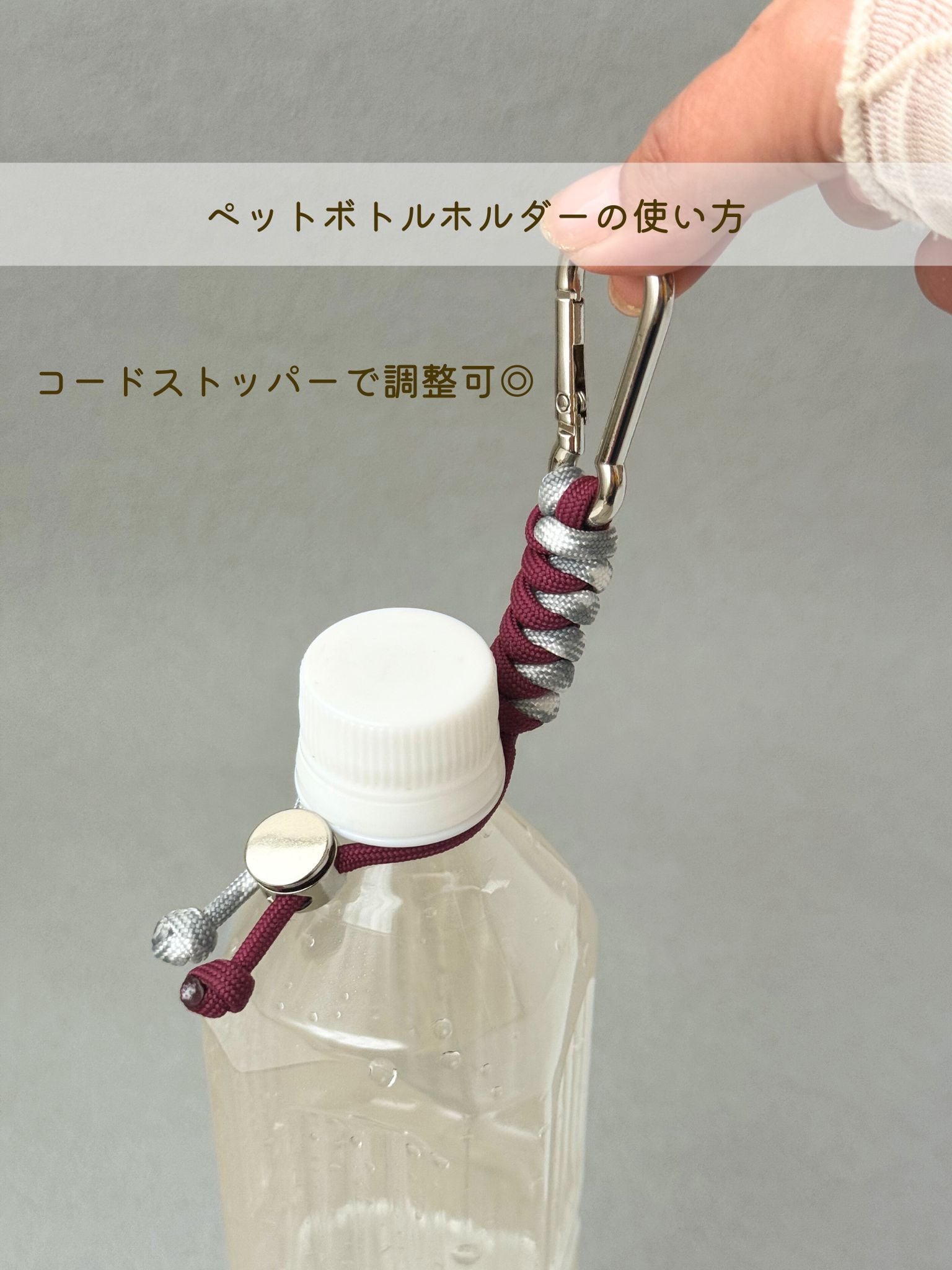 お散歩のとき、街歩きの時、ペットボトルをバッグやベルトに掛けて持ち運べる便利アイテム。