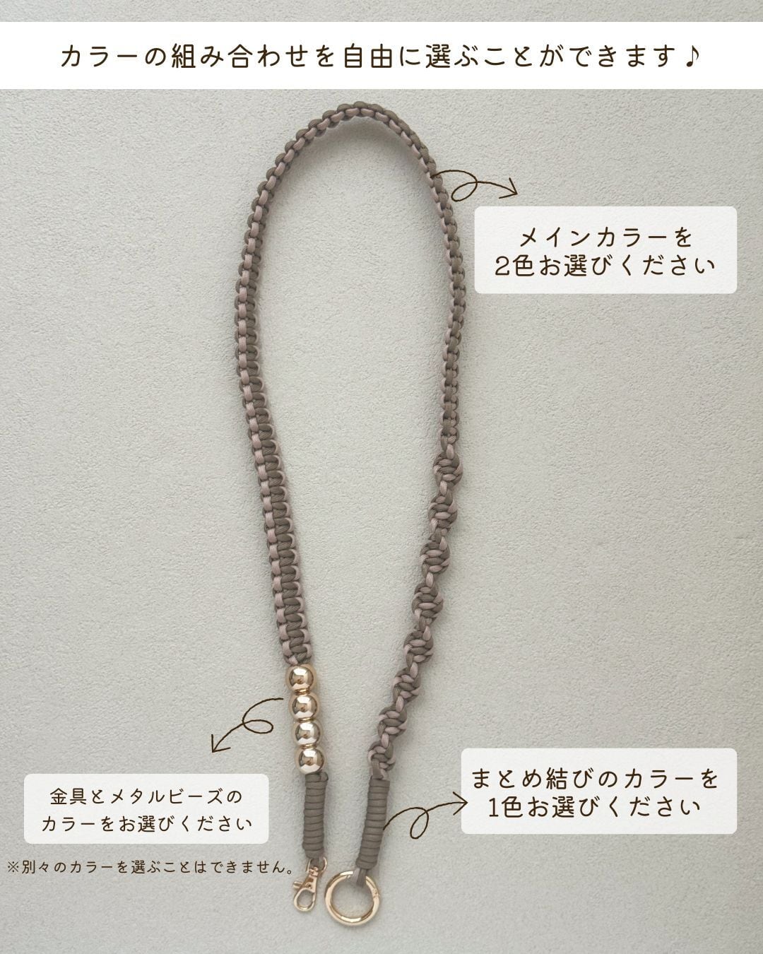 ハンドストラップTwolinkの長さは、40~42㎝ほどの仕上がりになるので、合わせて使うと最長140㎝ほどになります。