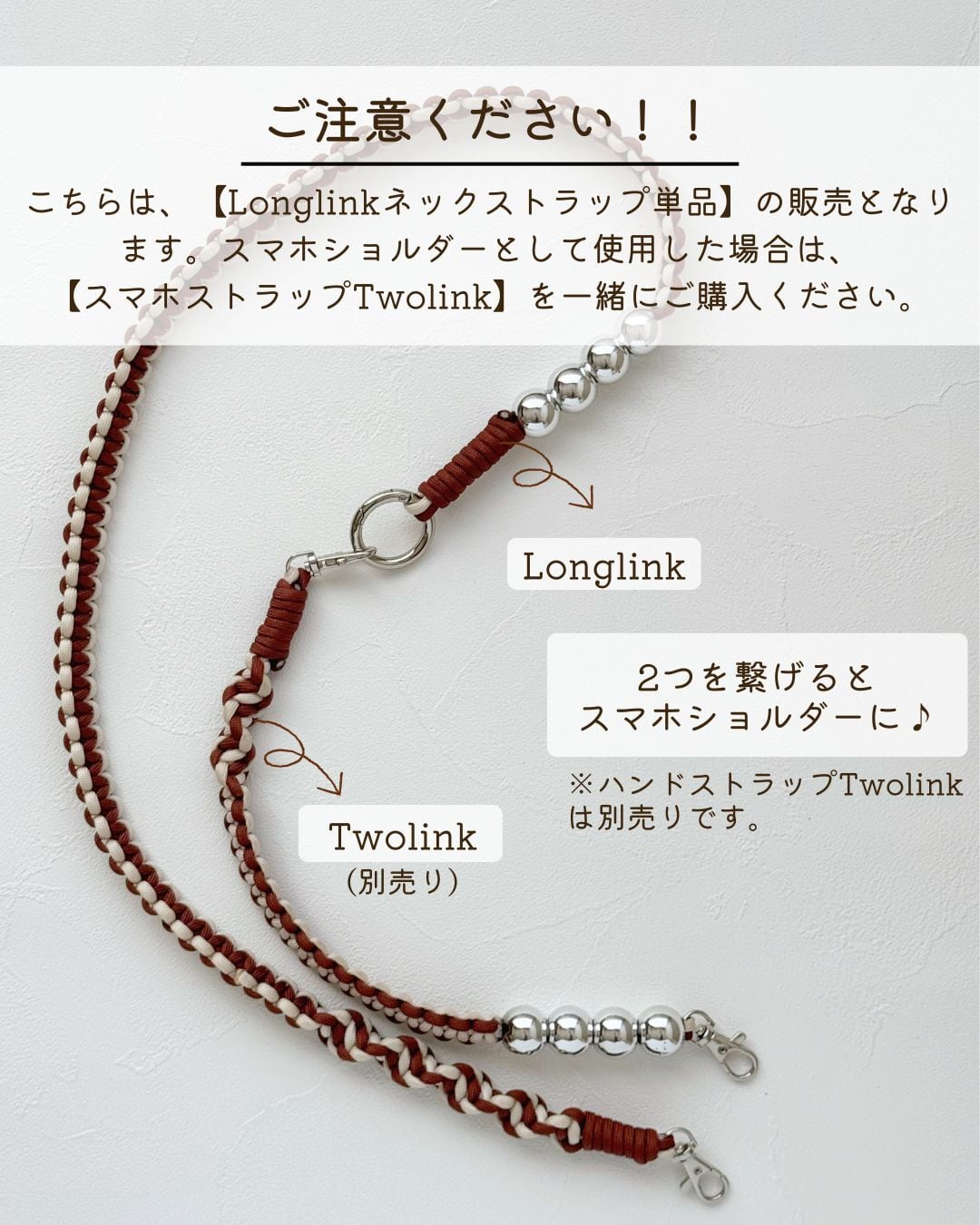 大人気のハンドストラップTwolinkと繋げることでスマホショルダーとして使えます♪