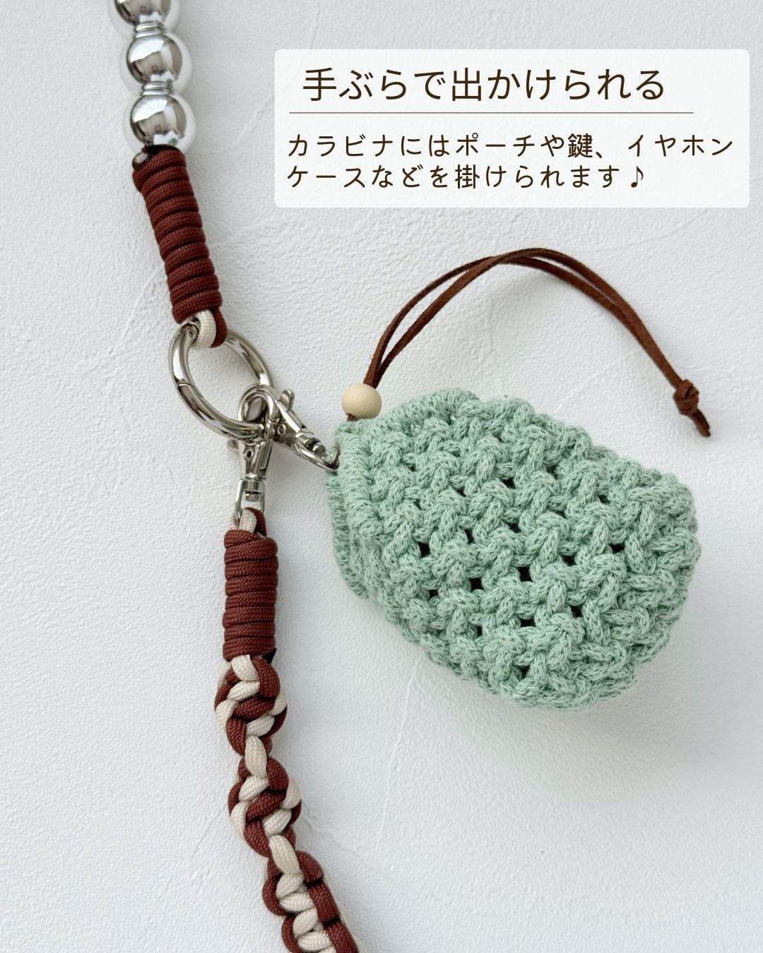 ハンドストラップTwolinkの長さは、金具を含めて40㎝前後の仕上がりになるので、2つを合わせて使うと最長140㎝ほどになります。