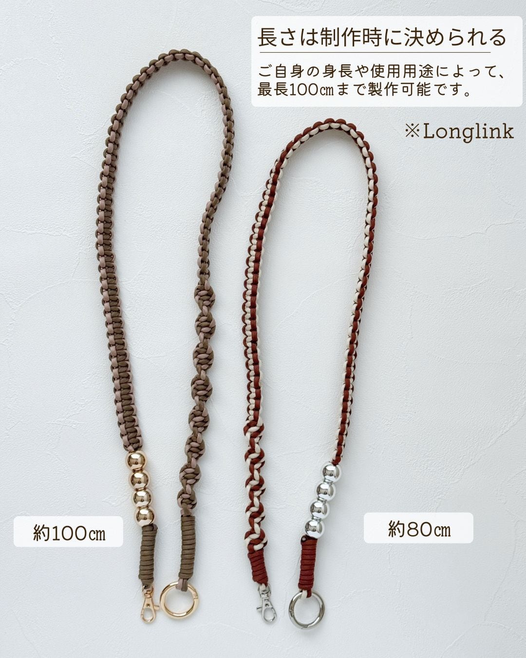 ネックストラップLonglinkは、制作時にお好みの長さで作ることできます。